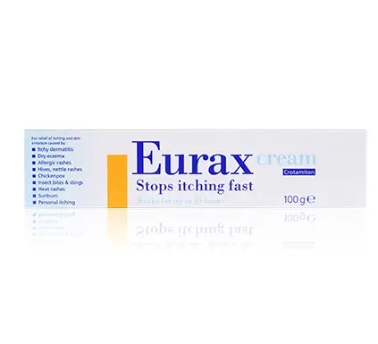 Eurax Cream with Crotamiton for the fast relief of itching & skin irritation caused by hives & allergic reactions. Always read the label. Eurax HC Cream with Crotamiton and Hydrocortisone for the fast relief of itching & skin irritation caused by dermatitis & allergic reactions. Always read the label.